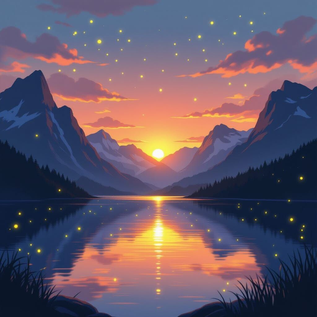 Easily create your own stunning images of fireflies, lakes, mountains and sunsets with our free AI image generator!