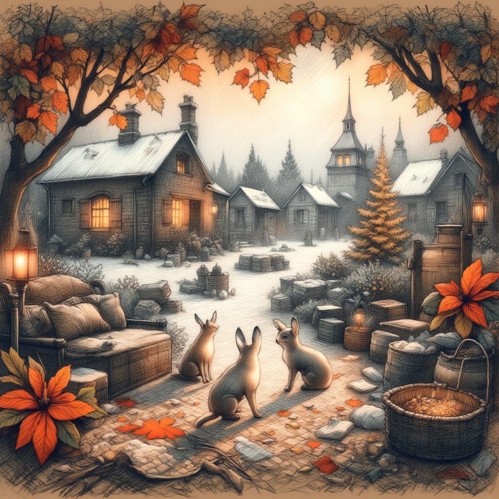 This image depicts a charming and cozy Christmas setting in a picturesque provincial town, evoking a warm and festive atmosphere.