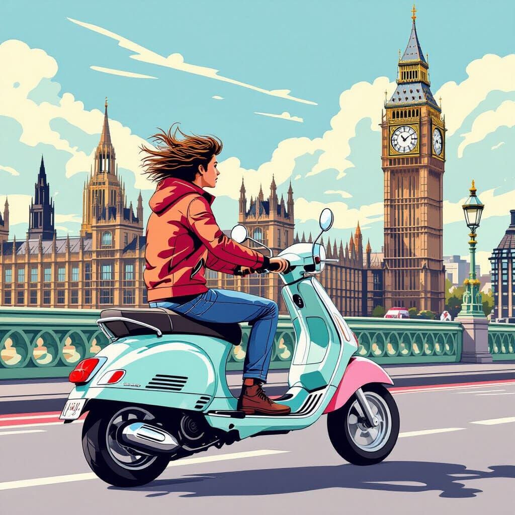 Create your own images of scooters, British fashion and city life with our free AI image generator.