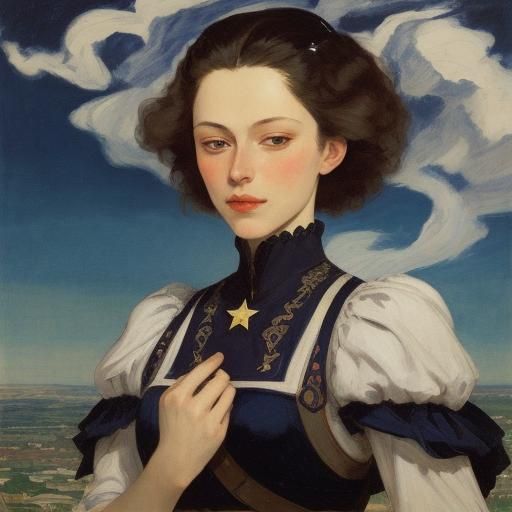A surreal image of a distant night mirage featuring a star whirlwind and a typhoon. The artwork evokes the style of classic portraiture with a focus on emotional expression.