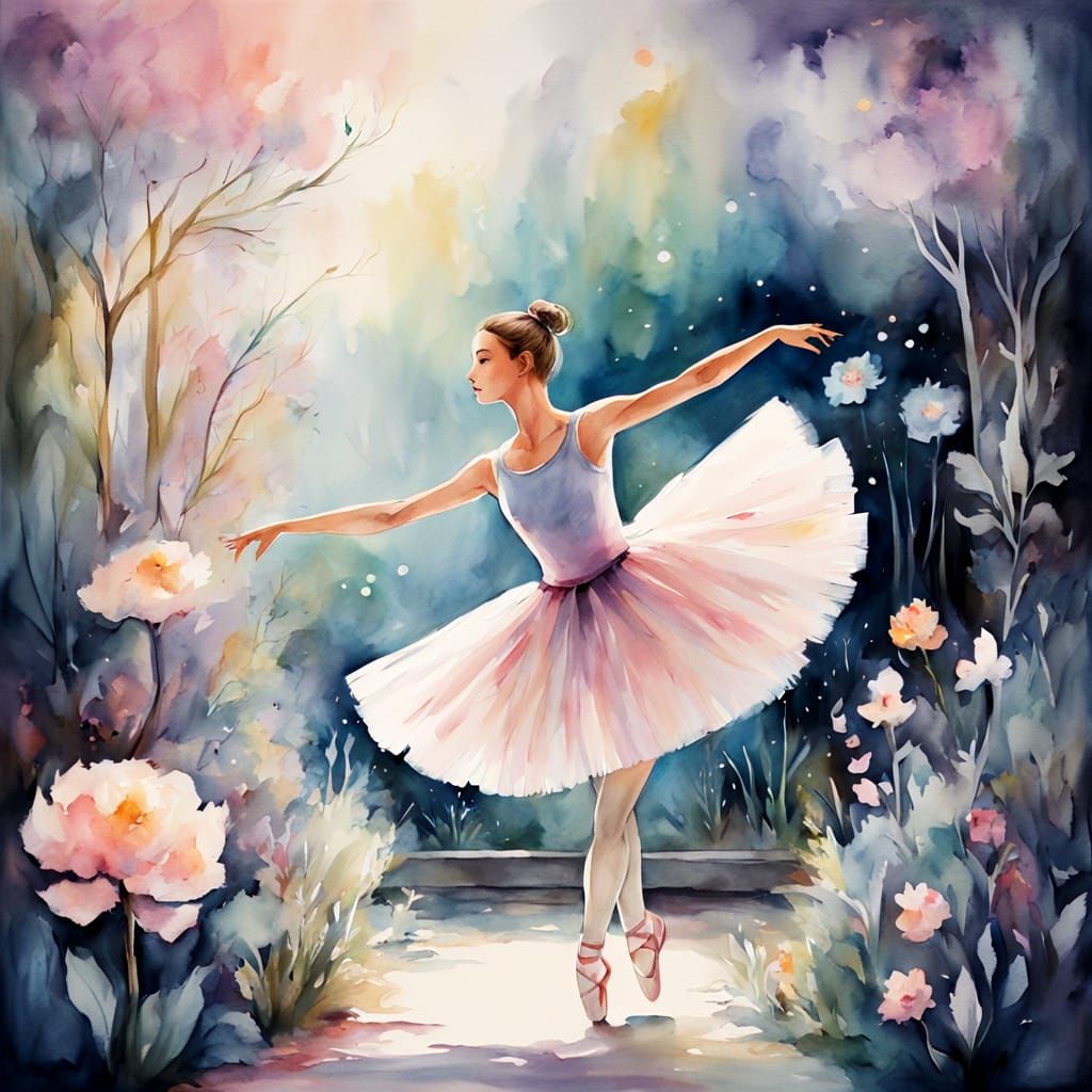 Easily create your own whimsical ballerina images with our free AI image generator, perfect for watercolor painting style enthusiasts