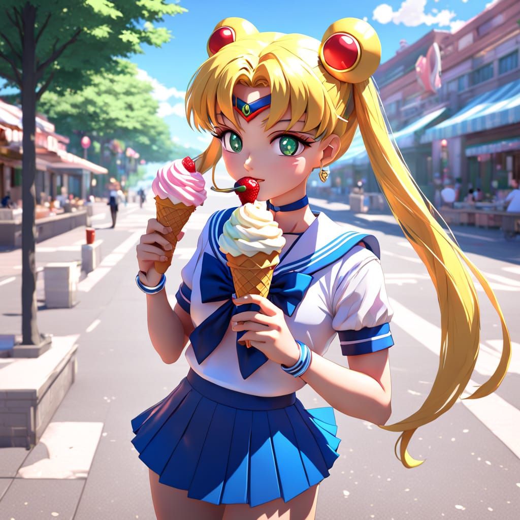 Make your own anime-style images of Sailor Moon eating ice cream. It's fun and free!
