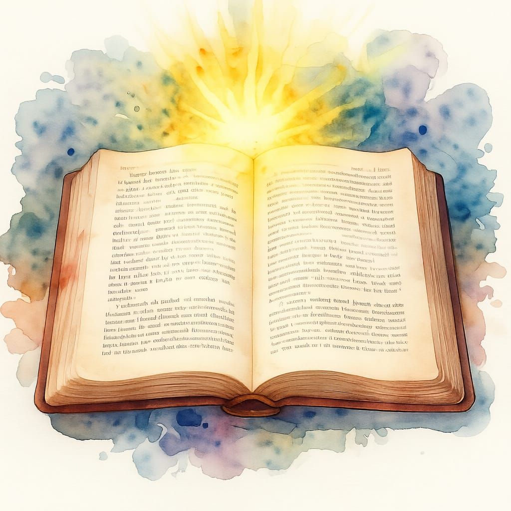 This image depicts the Bible as the living word of God, rendered in a delicate watercolor style. It conveys a sense of divine inspiration and spiritual depth.