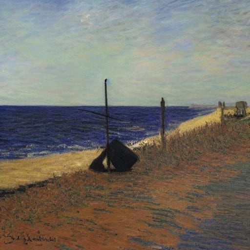 This image depicts a dark, celestial event with a shattering sky and a scythe guarding a girl on a beach, created in an impressionistic and realist style.