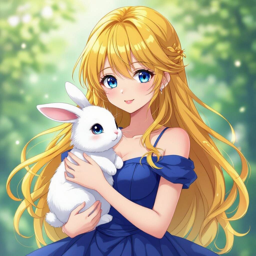 Generate unique anime girl images with blue eyes, blonde hair, and a bunny. Free and easy AI creation!
