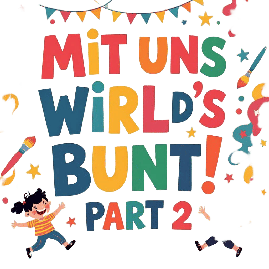 This poster advertises a colorful art project for children aged 6-10, titled "Mit uns wird´s bunt!" (It will be colorful with us!).