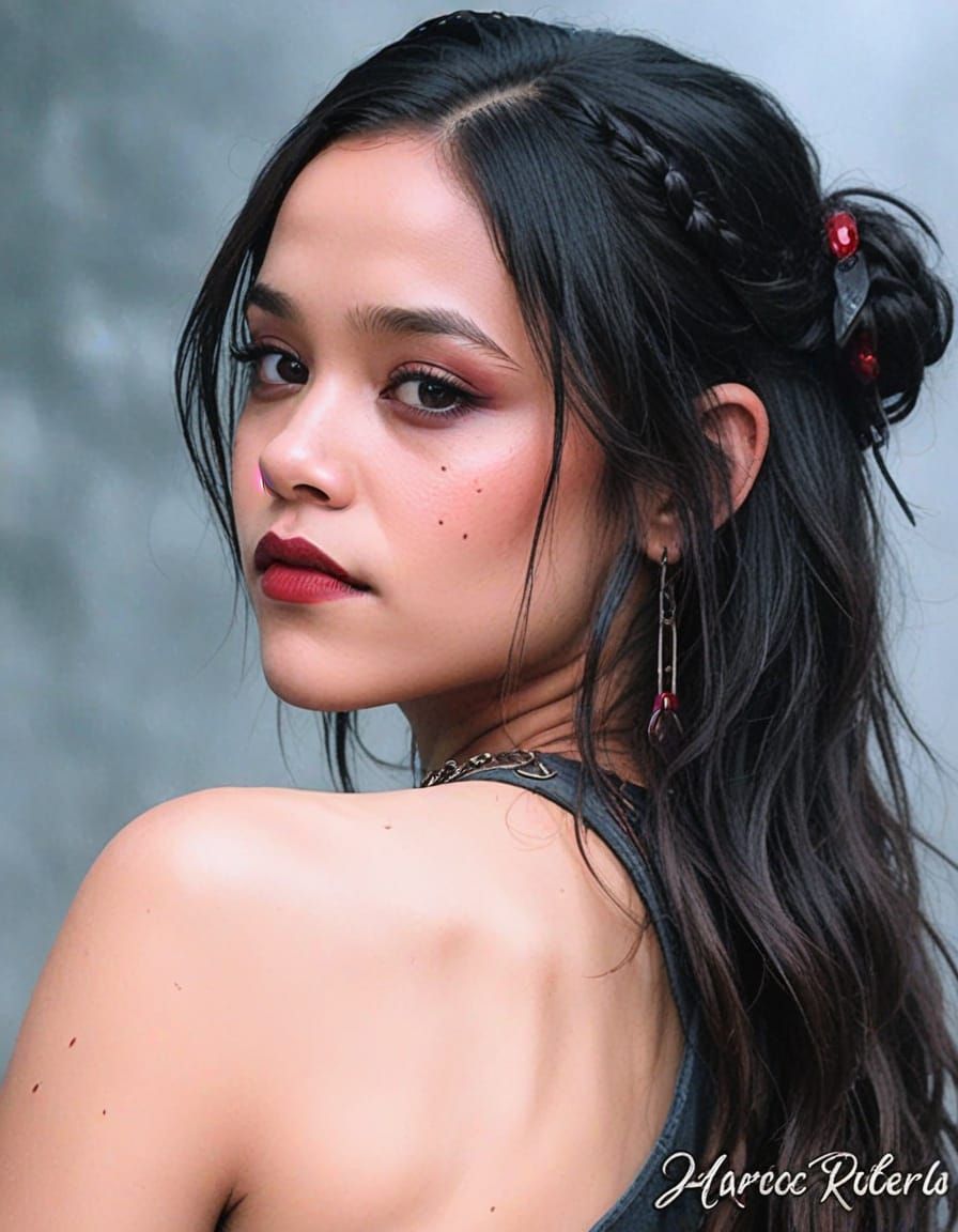 A cool portrait of actress Jenna Ortega as mystical superheroine Raven, from DC's Titans.
