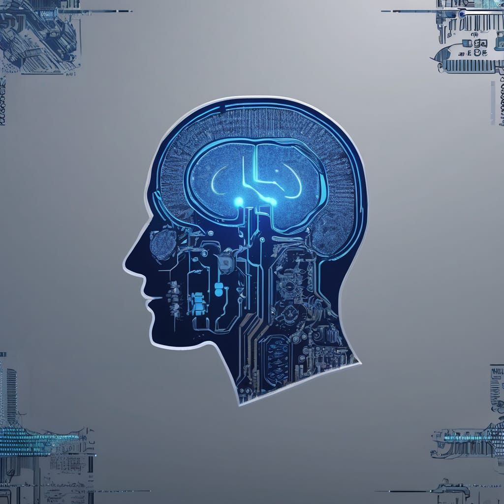 This striking book cover features a stylized brain silhouette merging into a silver circuit board, set against a deep navy blue background with glowing electric blue accents and holographic AI icons.
