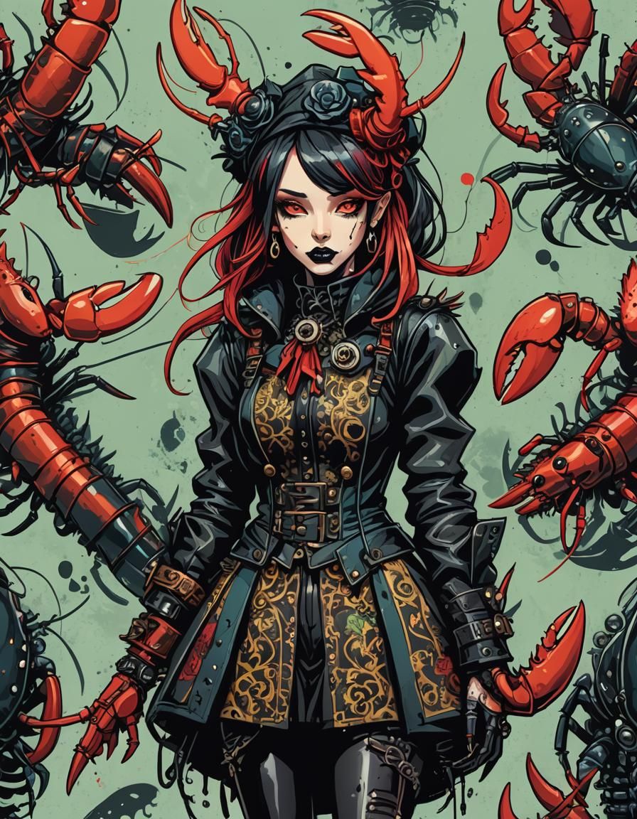 This image shows an anthropomorphic lobster girl in punk gothic clothing. The colorful cartoon art style gives the image a comic book aesthetic.
