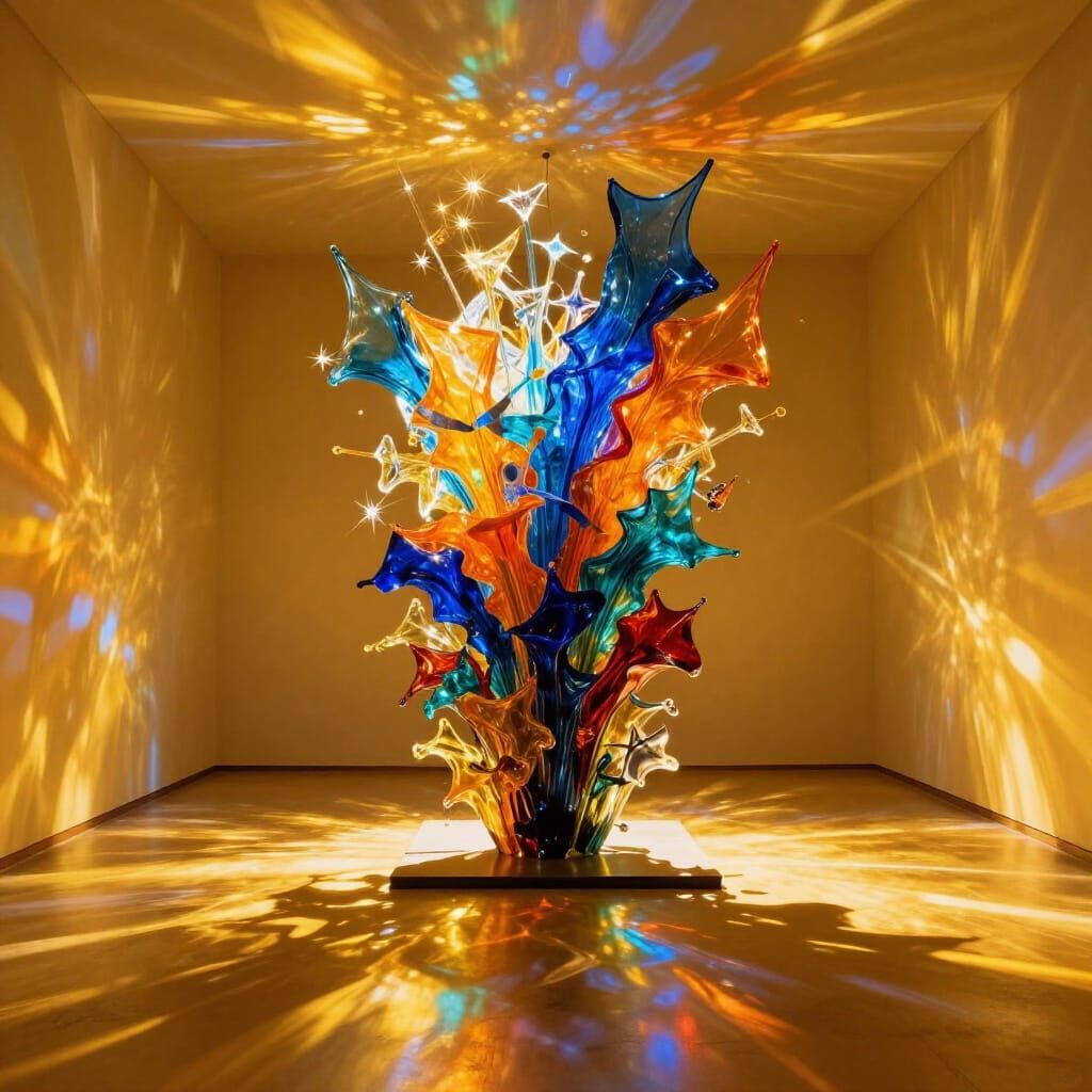 Generate stunning abstract dichroic glass sculptures with vibrant colors and intense light effects. Free and easy to use!