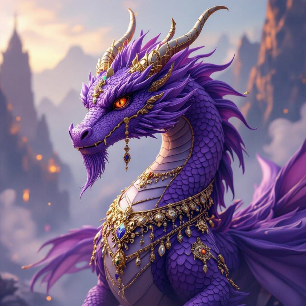 Easily generate unique purple and gold dragon images with our free AI art generator. Unleash your imagination!