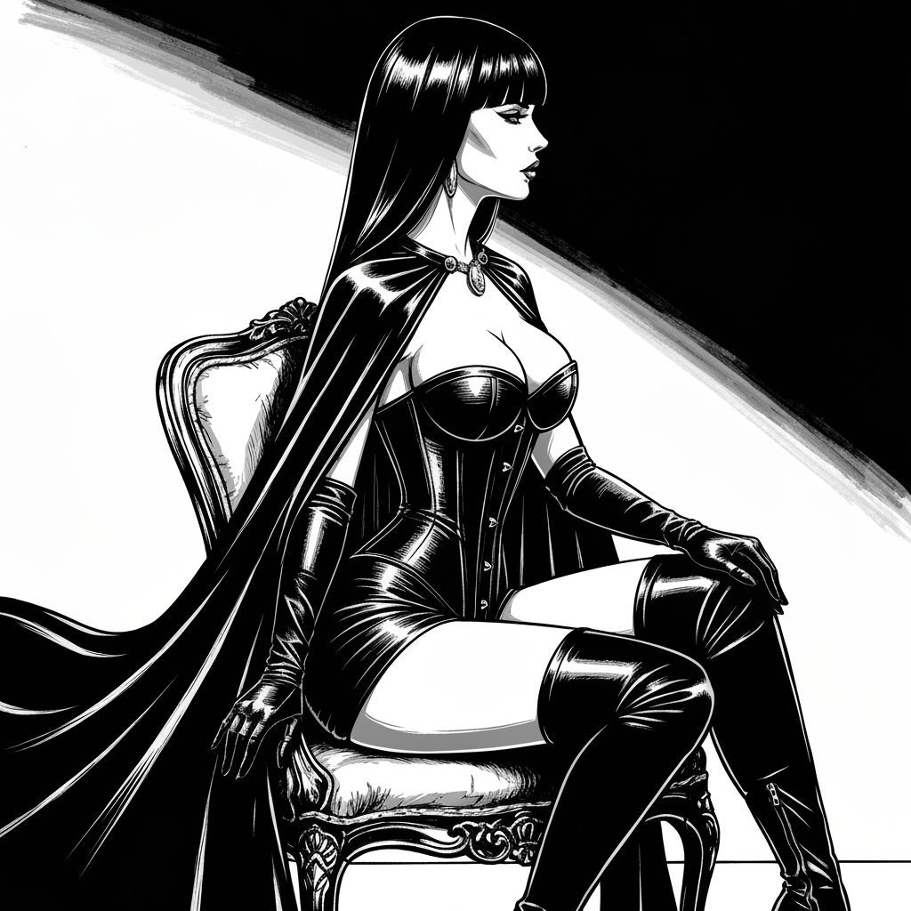 This image features an abstract black and white ink portrait of a voluptuous Italian woman in profile. Rendered with dramatic chiaroscuro and visible brushstrokes, inspired by bold ink art.