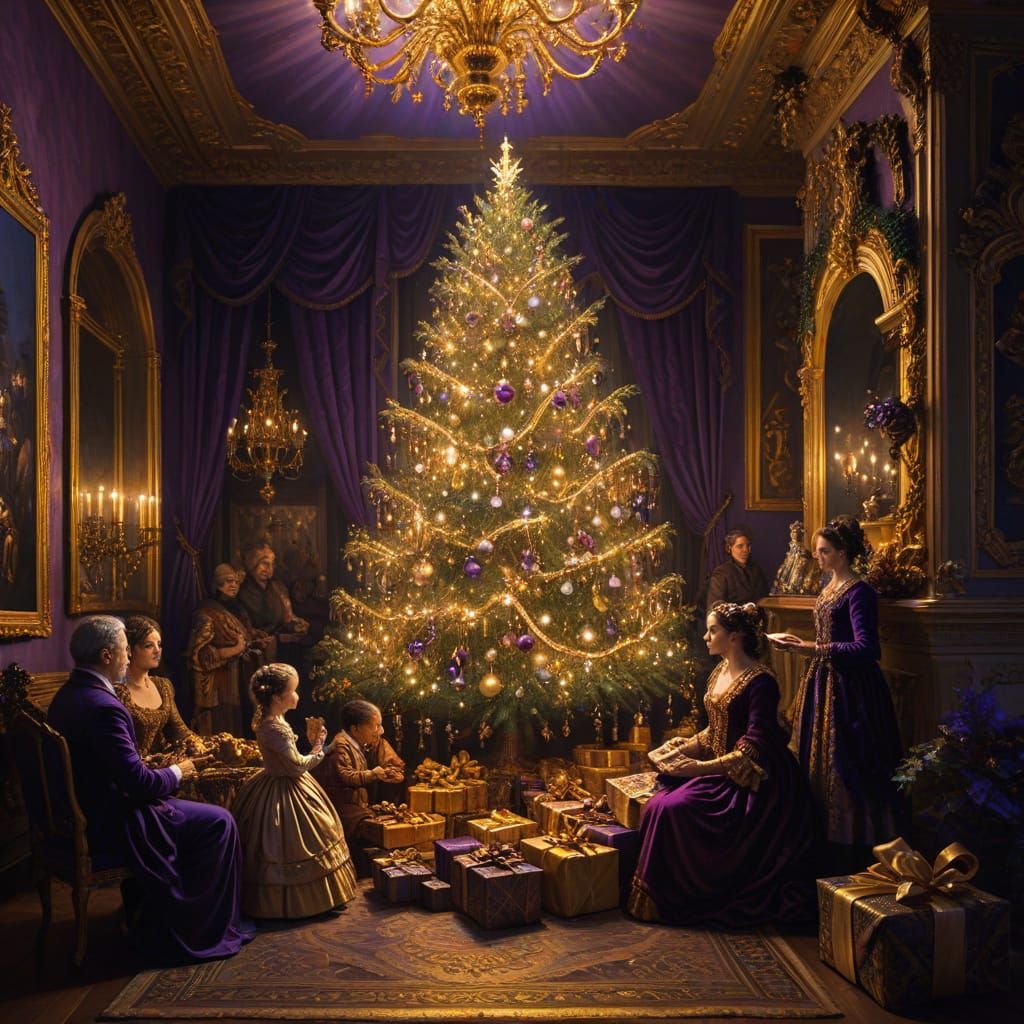 Generate stunning Baroque Christmas images, dominated by violet, with our free and easy AI tool.