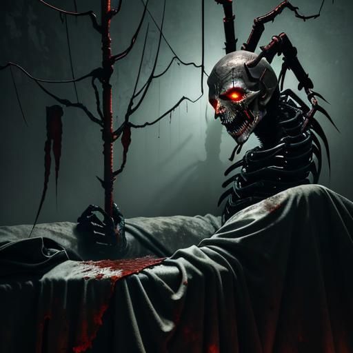 (Absolutely Terrifying sleep paralysis demon boogeyman Michael myers freddy Krueger pennywise Darth sidious fused hybrid fusion 100% true form slasher horror villain wearing a michael myers mask unlike anything you’ve ever seen mindlessly running right at you)(Extreme realism)(extremely detailed photograph)(vignette)Literally ...