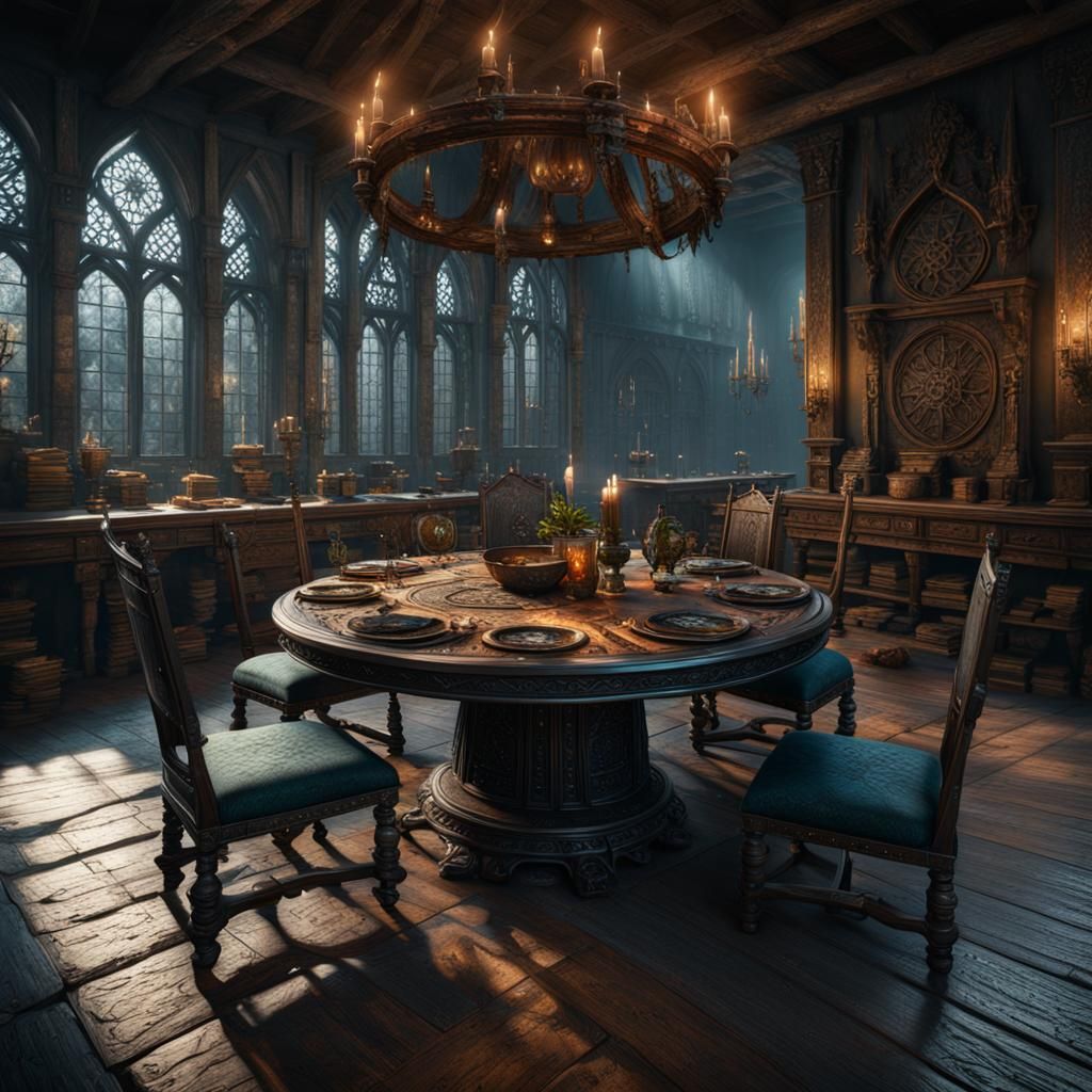 A detailed matte painting of a Witcher-style table. The image features deep colors, intricate details, and complementary color palettes, rendered as 8k resolution fantasy concept art.