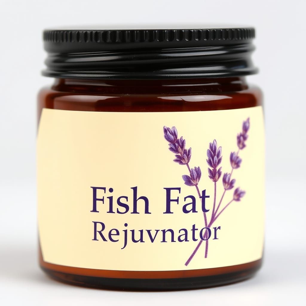 This image shows a sticker design for a facial scrub product, featuring a creamy color palette and subtle lavender details, conveying a sense of natural and calming skincare