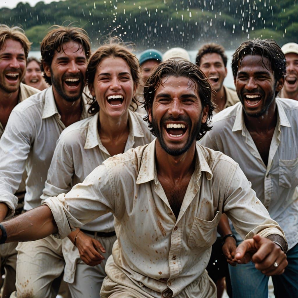 A lively portrait of young people celebrating on a yacht, surrounded by the warm tones of a summer day, with waves and water droplets adding to the joyous atmosphere