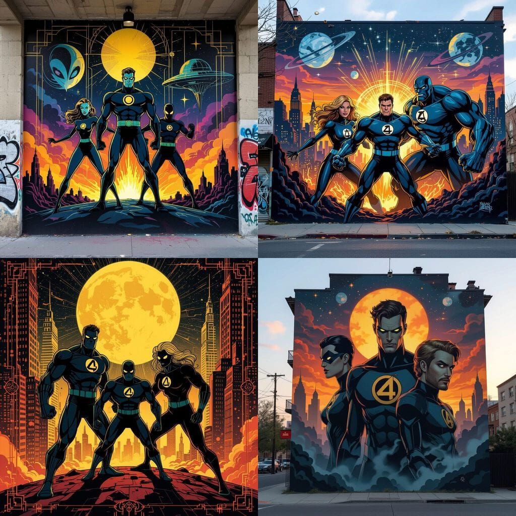 This AI-generated image captures an ominous twilight with a sci-fi and horror theme, rendered in a striking Art Deco and street art aesthetic.