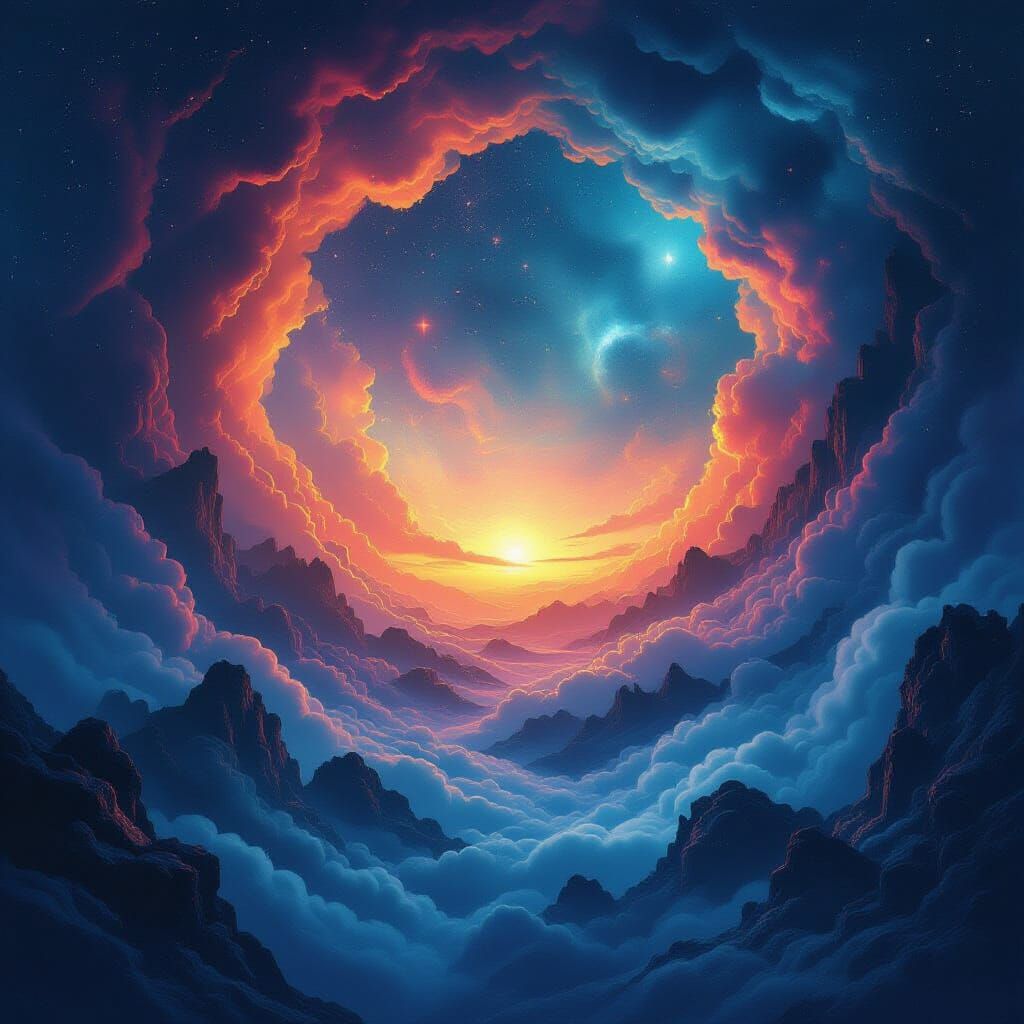 Generate your own unique void postcards with our free AI tool. Explore vivid colors and ephemeral surrealism easily.