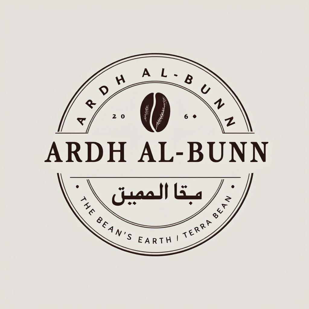 This image features a modern classic logo for Ardh Al-Bunn coffee shop. It combines earthy, artisanal elements with elegant typography, evoking warmth and connection to nature.