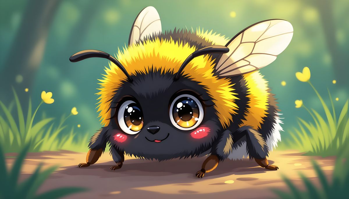 This image shows a cartoon bumblebee rendered in an anime style. The character has large, cute eyes and a sleepy expression, reminiscent of Japanese manga and anime art.