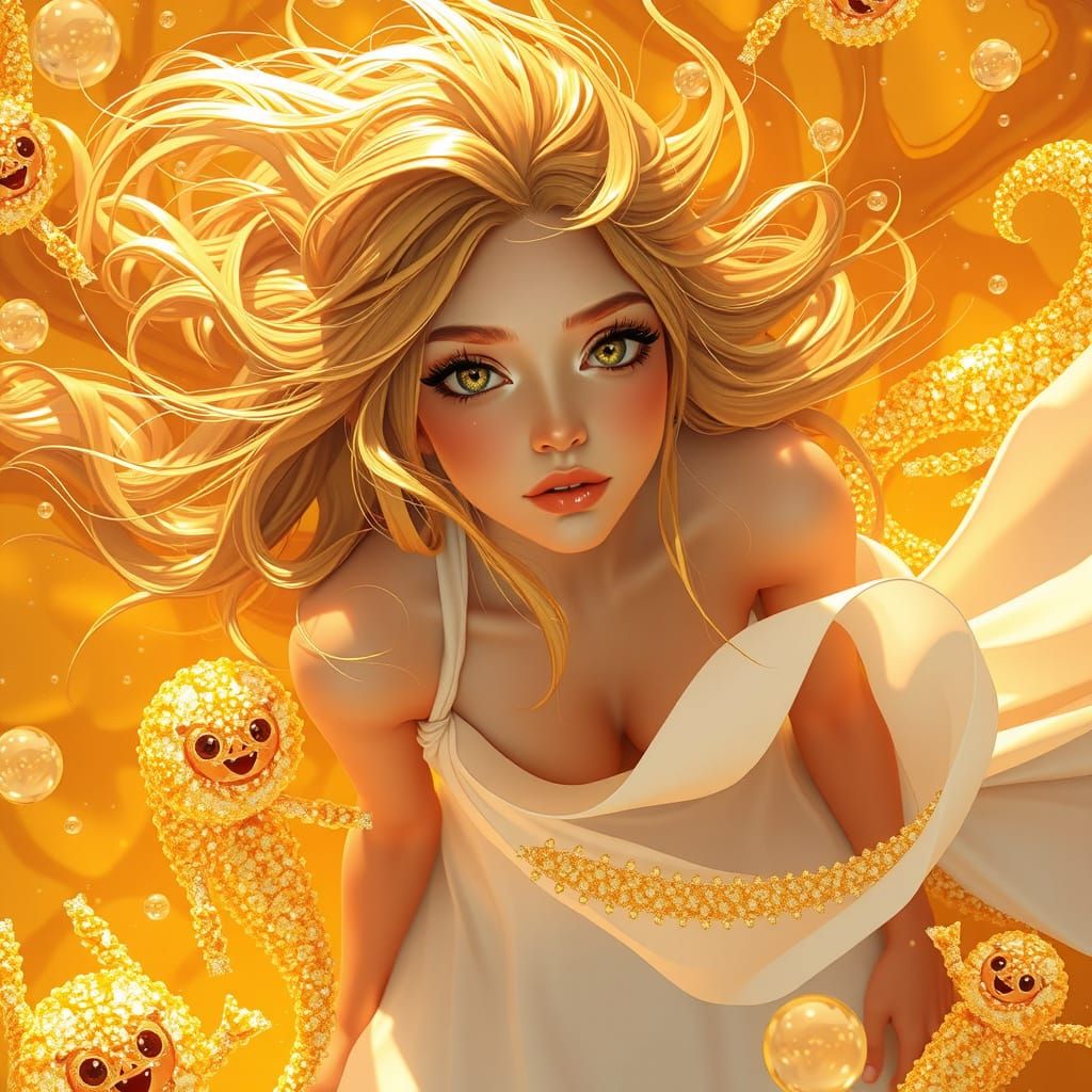 Create beautiful portraits with flowing golden hair using our AI image generator. It's free and easy!