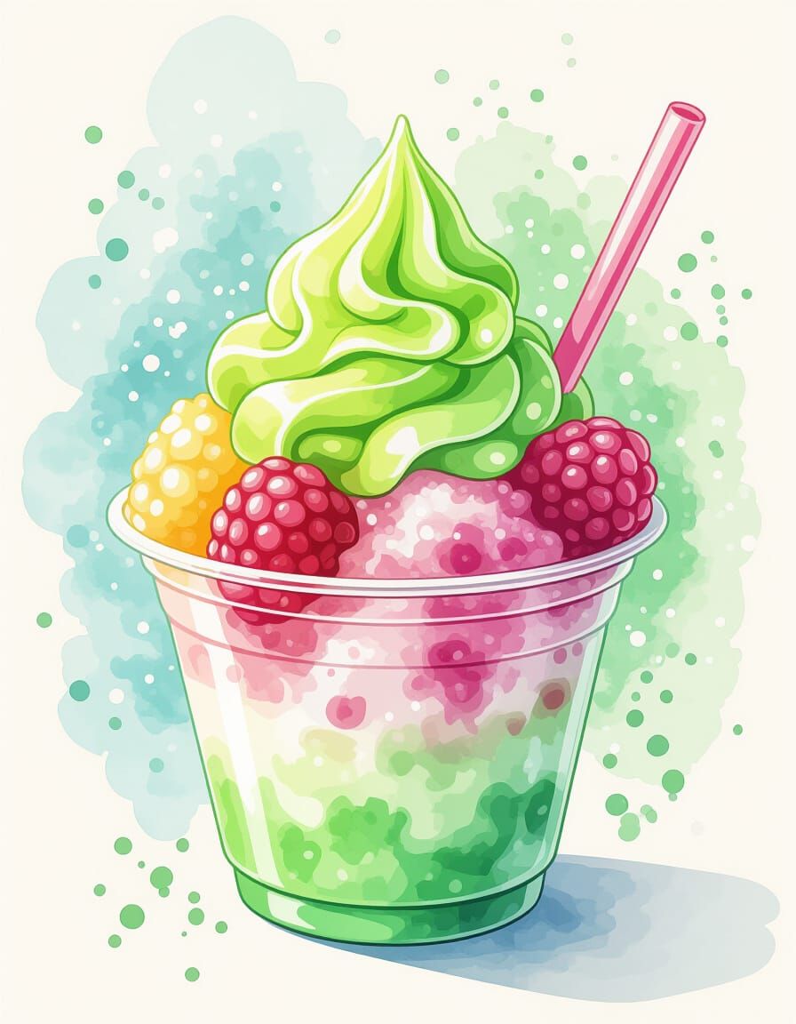 Easily create your own watercolor splash art of Japanese shaved ice with our free AI image generator!