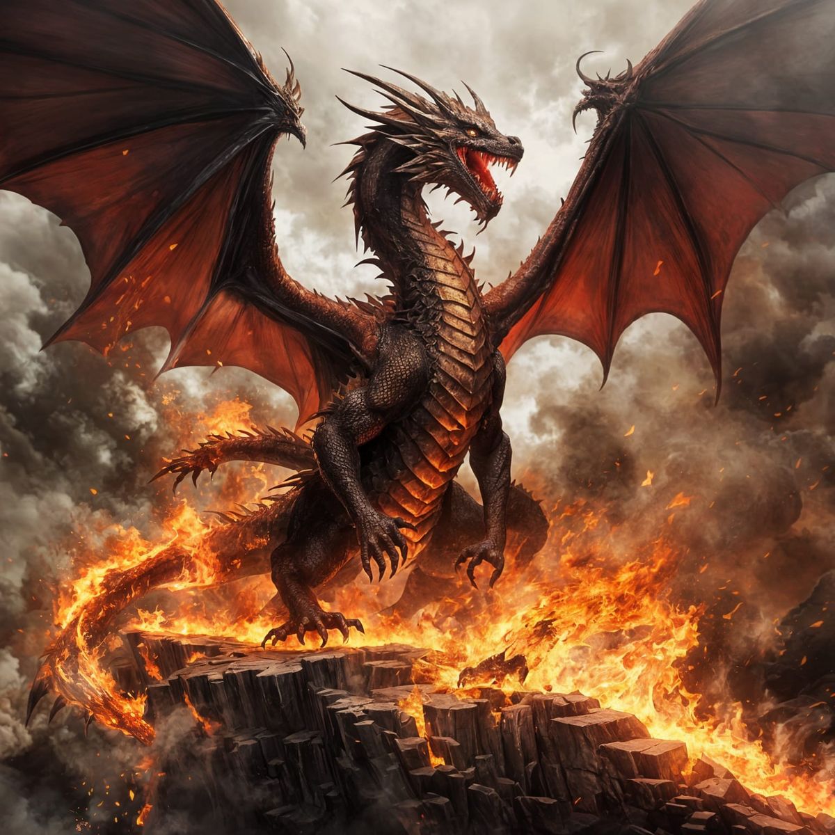 A dramatic image of a dragon engulfed in flames, conveying intense rage. The artwork captures the raw power and destructive nature of the mythical beast.