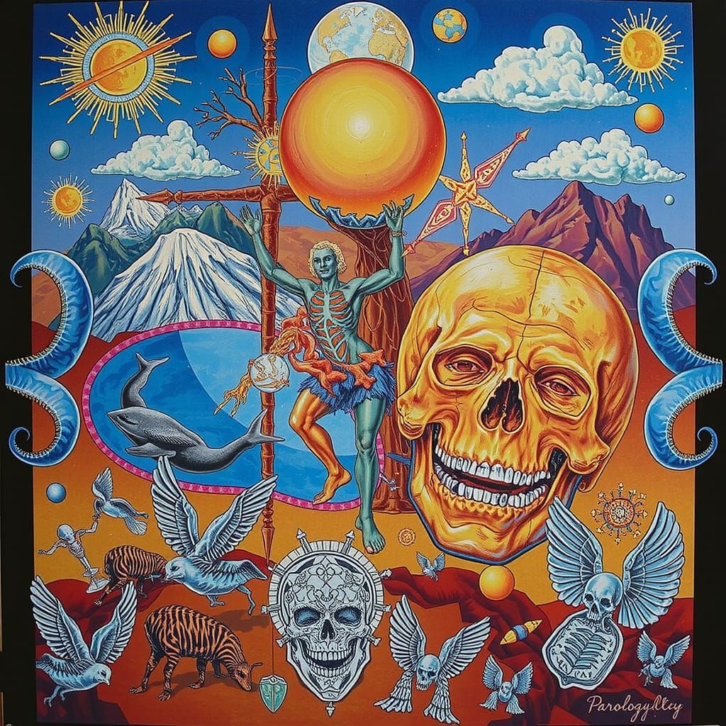 This image shows an AI interpretation of the concepts of paroxysm, cosmology, geology, anthropology, physiology, and pharmacology. It is a visual exploration of complex scientific topics.