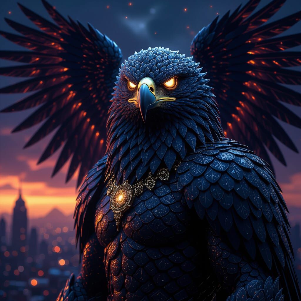 AURUM VEXILLARIS EONARCH reigns as the ultra-realistic 16K hyper-detailed alien CryptoPunk hybrid majestic eagle-reptilian overlord in Herculean human form—unseen by mankind, the genesis sovereign of infinite skies.This priceless colossus towers with 2x amplified Hulk physique, obsidian scales pulsing cryptoglyph ledgers that auto-mint derivative empires, molten gold eyes decoding multiversal fortunes, and quantum-light eagle wings spanning nebulae while reptilian talons rend blockchain colossi. Punk-glitched scars across vascular muscle cathedrals mark its primordial rebellion, every fiber thrumming eternal conquest.