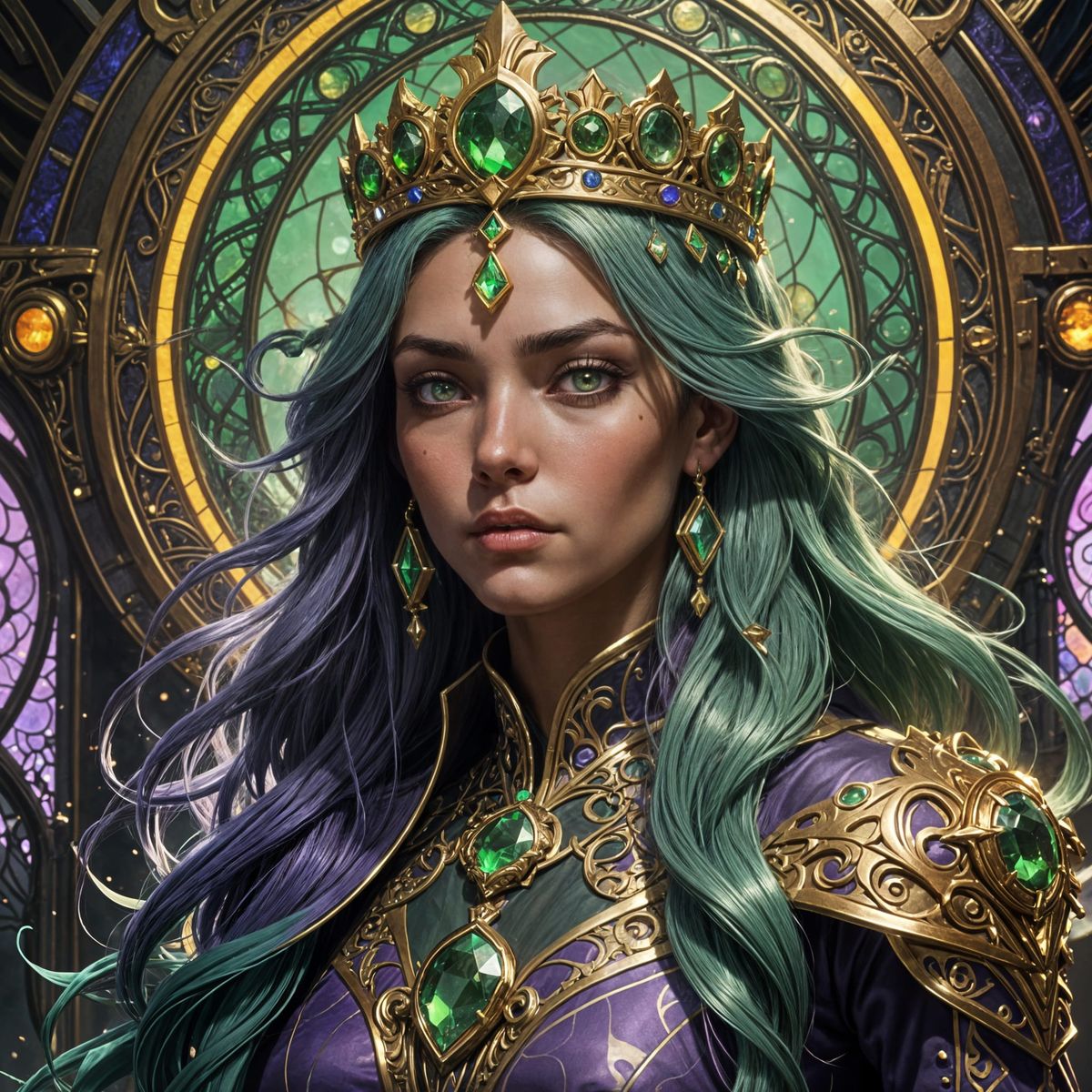 Generate your own powerful characters with green eyes and gem suits. Free and easy AI image creation.