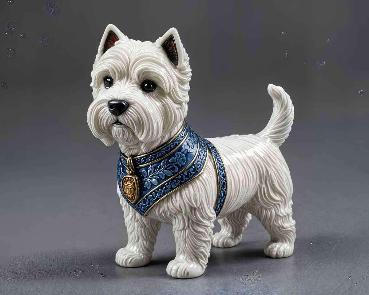 a highly detailed enameled glass west highland white terrier