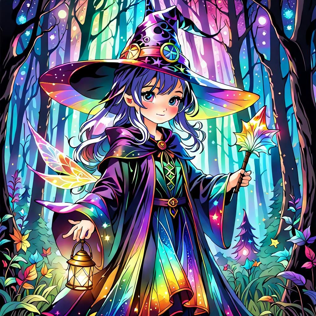 Iridescent Witch in Rainbow Forest: Psychedelic Art