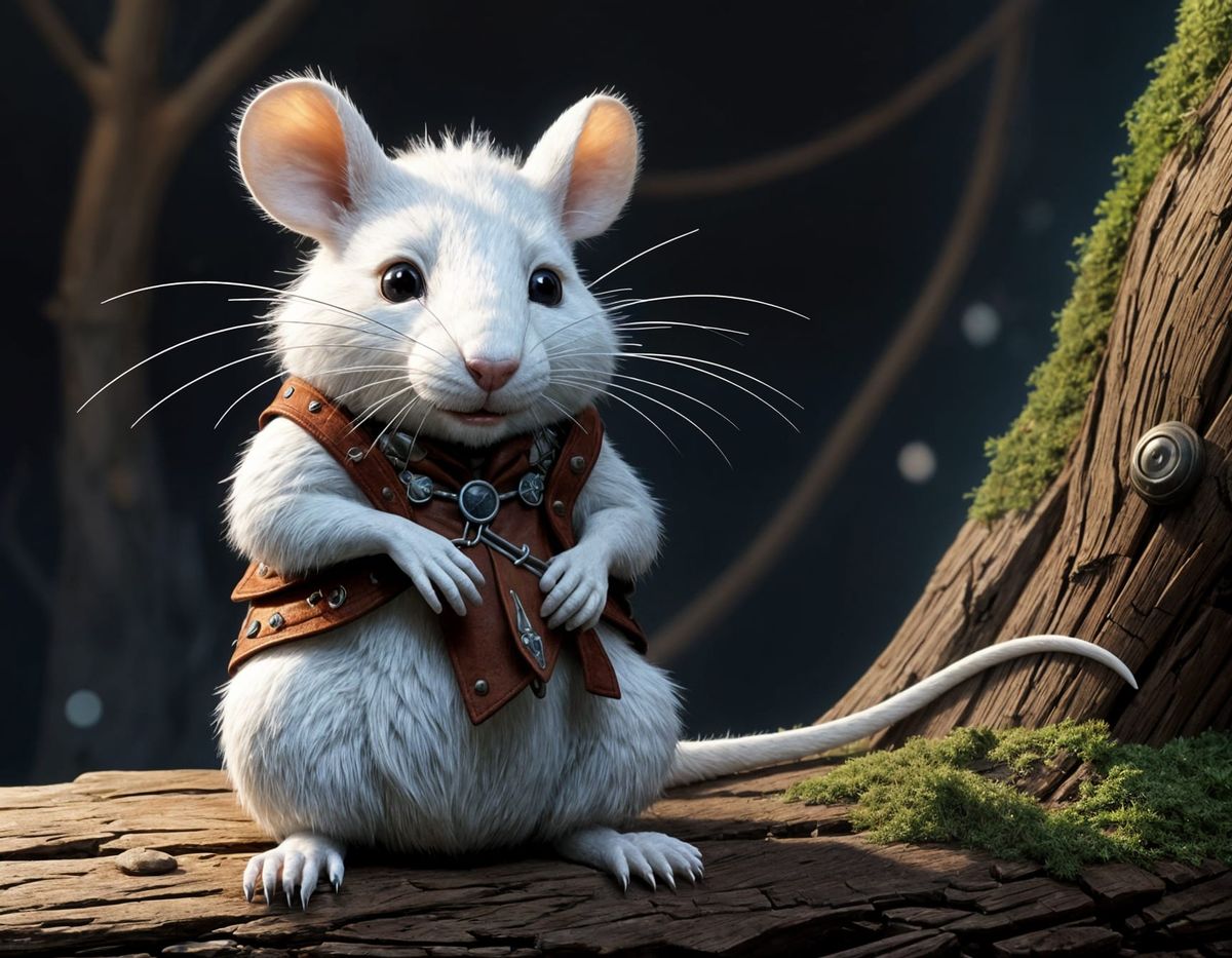 A concept art image of a shy white rat plushie. The artwork is a masterpiece influenced by several artists, with focus on details and artistic composition.