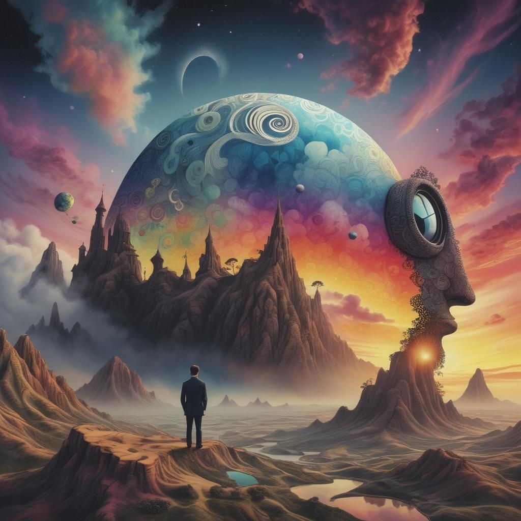 A vibrant image of a pop surrealist zentangle with a tie-dye effect. The artwork combines intricate patterns and bold colors for a mesmerizing visual experience.