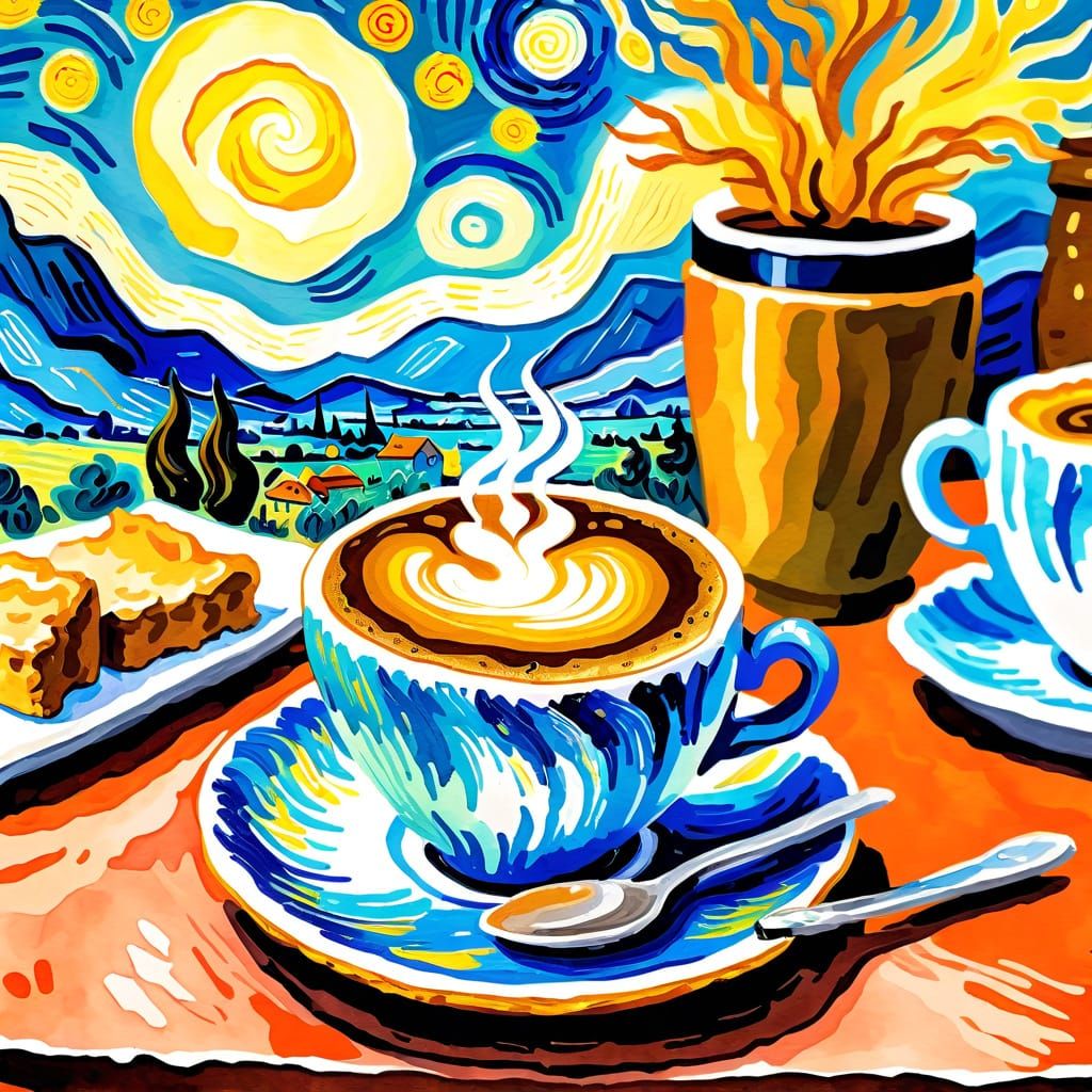 Make your own Van Gogh-style coffee art! It's free and easy with our AI image generator.