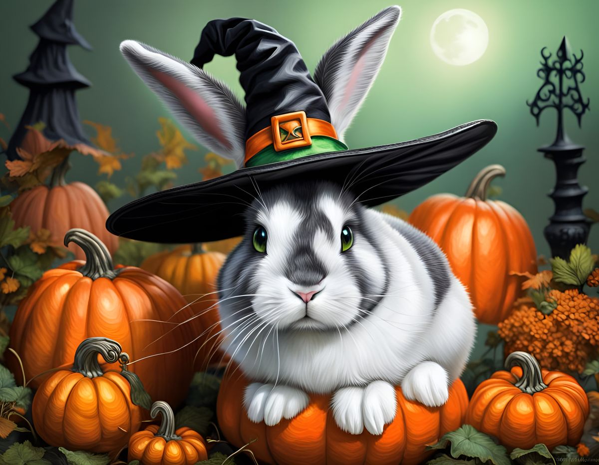 Generate your own adorable, hyper-detailed black and white bunnies for Halloween. Free and easy AI image creation!