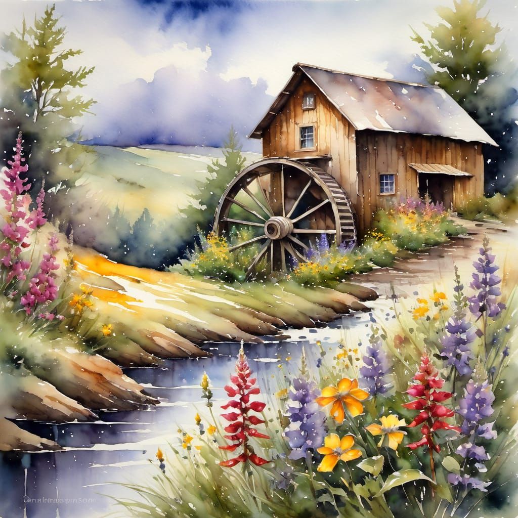 Easily generate your own waterwheel images with our free AI image generator, perfect for watercolor enthusiasts and nature lovers.