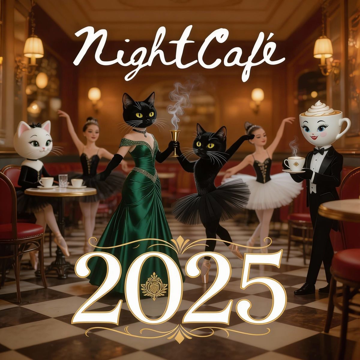A unique AI-generated collage seamlessly blending multiple artworks from 2025, featuring a central logo, user avatar, and stylized "2025" text.