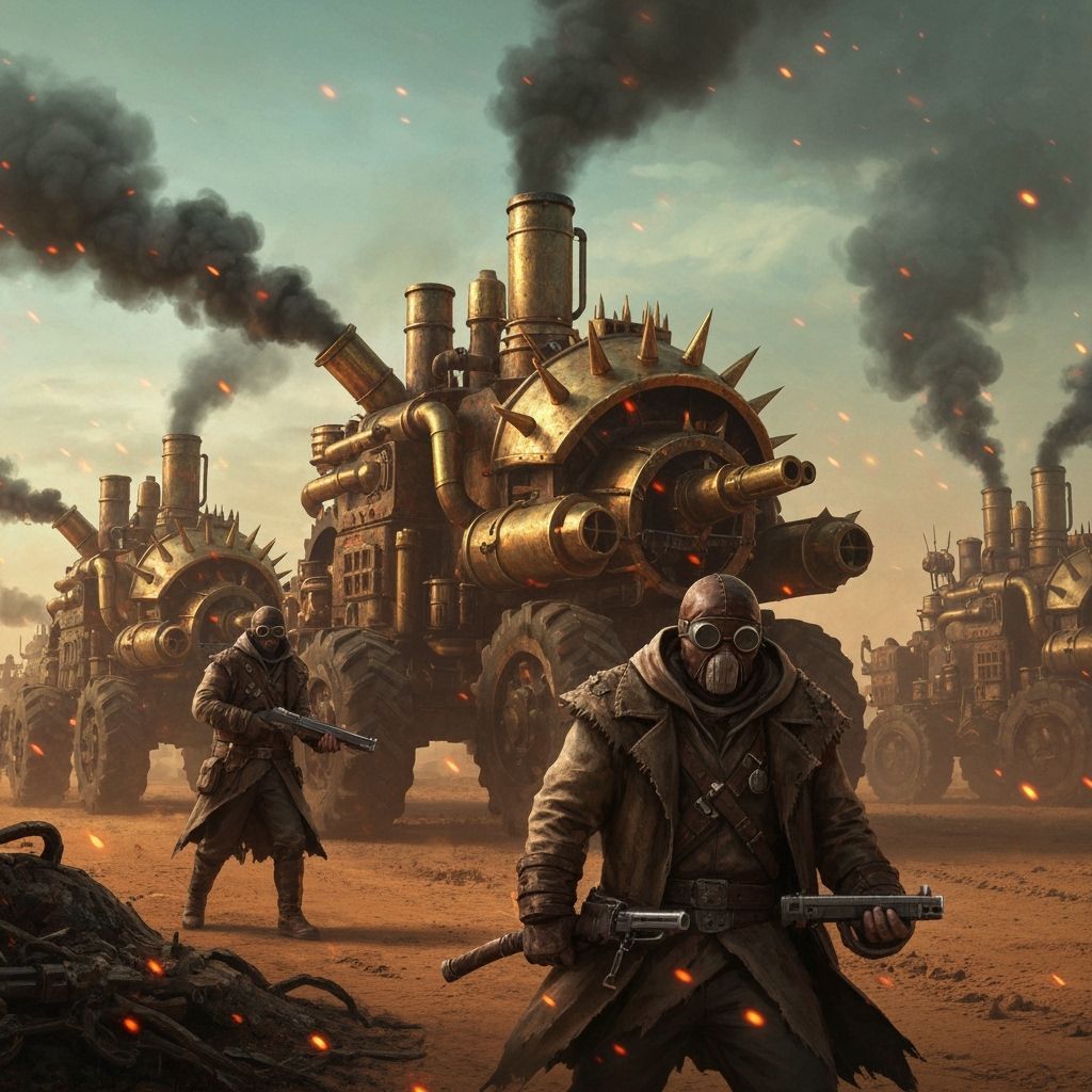 Create your own apocalyptic steampunk vehicles with our free AI image generator. Easy and fun to use!
