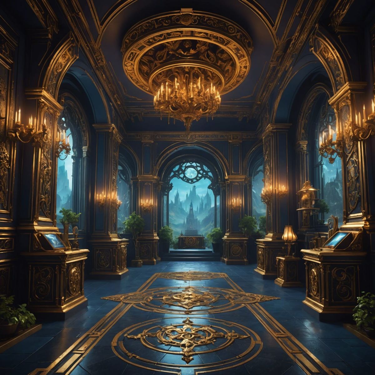 This image shows a business card with NFC technology, rendered as detailed digital art. The color palette is complementary, with intricate details and a fantastical concept.