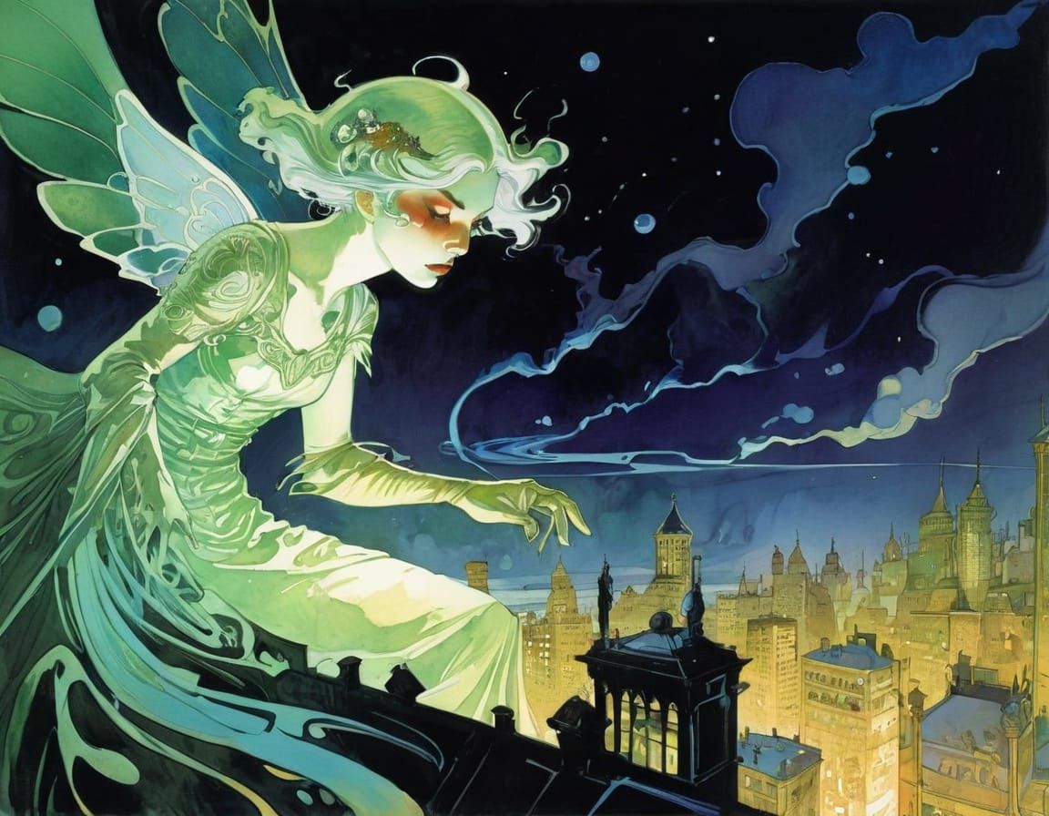 This AI-generated image showcases a fusion of distinct artistic influences, blending figurative expressionism with comic book and fantasy art elements for a unique visual experience.