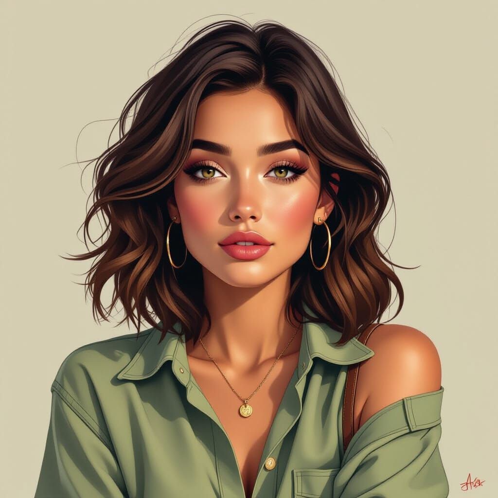 This image shows a person with diverse features in casual clothing, gazing introspectively. The semi-realistic portrait features intricate textures, natural lighting, and emotional depth, reminiscent of digital art.