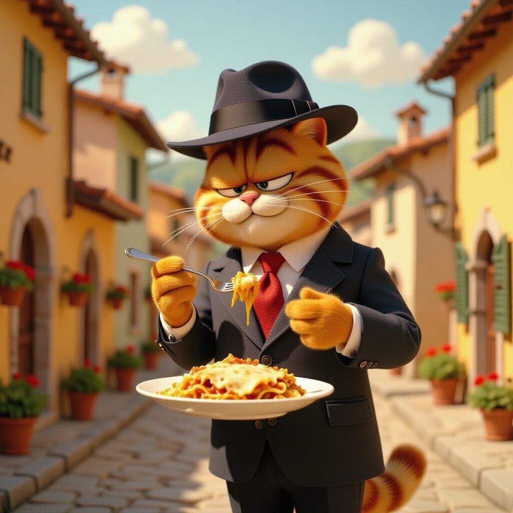 Create your own hilarious Garfield-themed images touring Italy for the best lasagne using our free AI image generator.