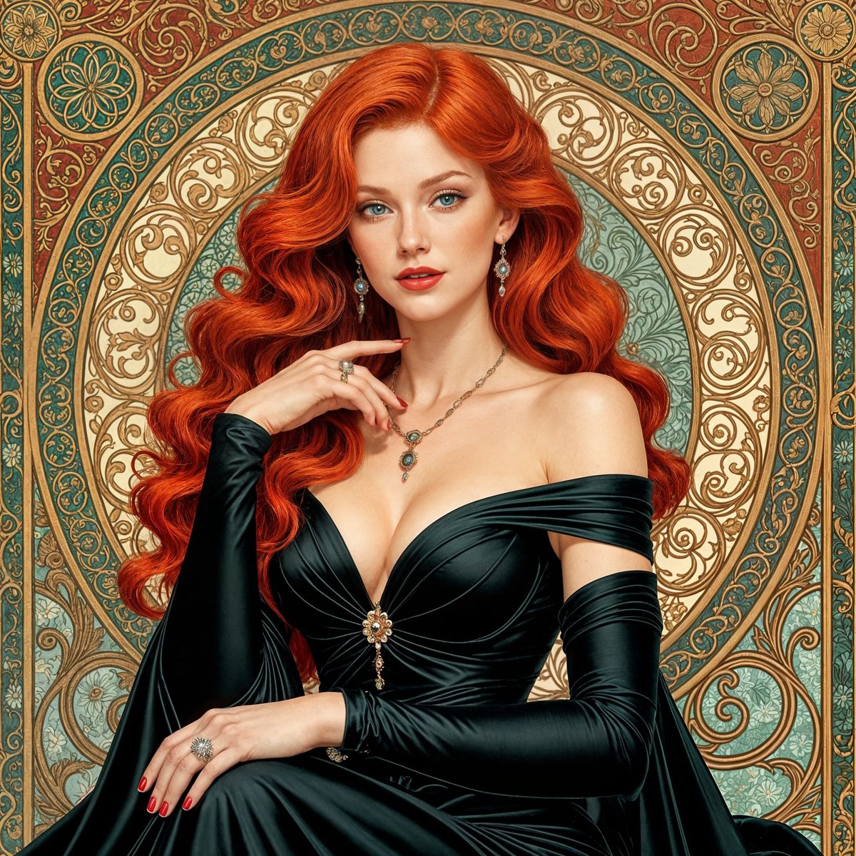 A striking picture of a beautiful woman with vibrant red hair. This AI-generated masterpiece captures a timeless vision of beauty.