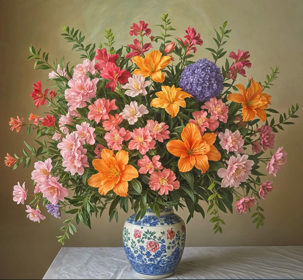 This image depicts a colorful bouquet of flowers in the style of French Impressionist painters, evoking the light and color of a Monet or Renoir masterpiece.