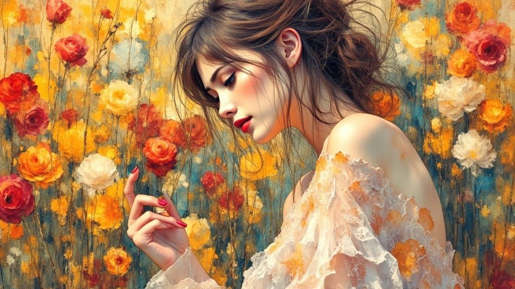 This image captures a sun-drenched garden scene with sensuous forms, rendered in a Post-Impressionist oil painting style with rich impasto textures and a dreamlike atmosphere.