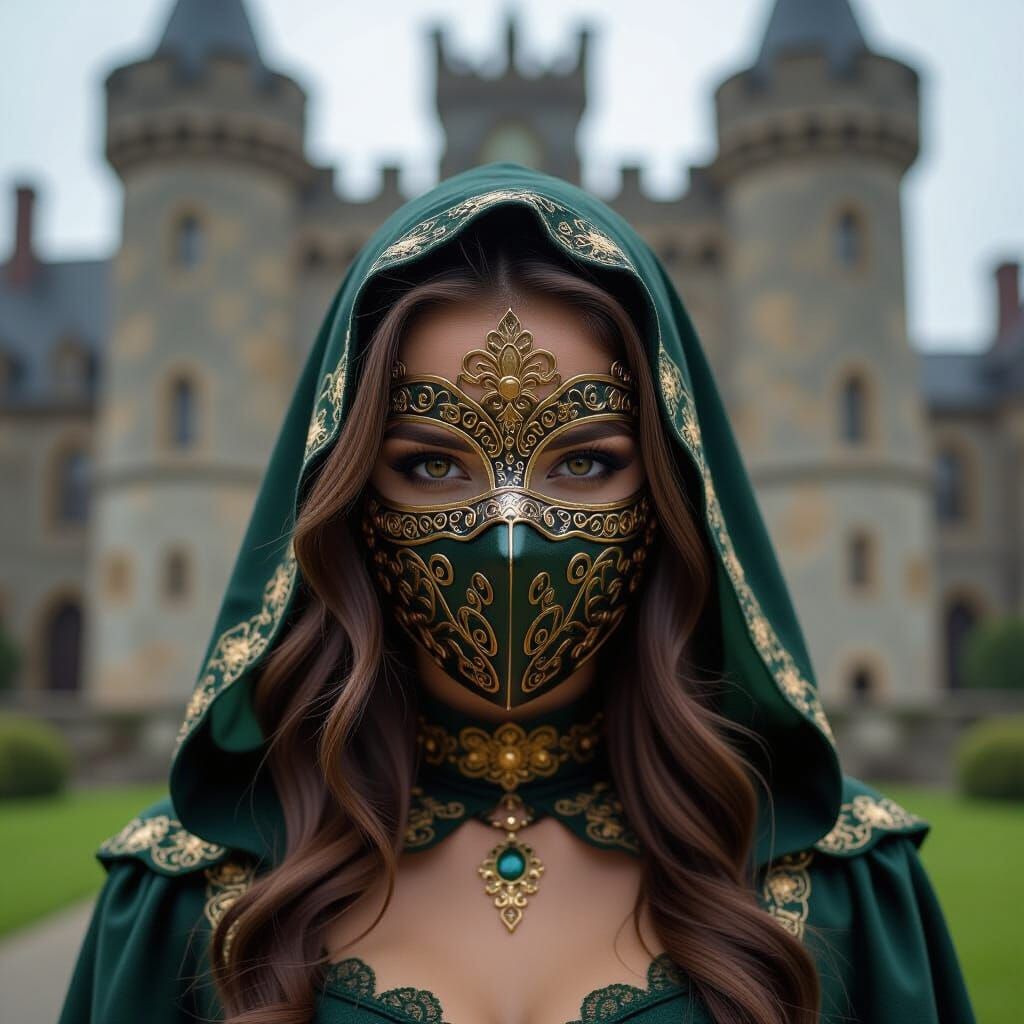 Generate unique images of women in masks within magical medieval castles. Free and easy AI art creation.