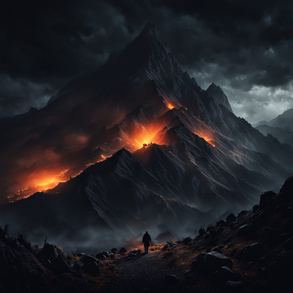 This image shows a menacing, shadowy figure lurking within the Andes mountains. The scene is set with an eerie atmosphere, featuring glowing embers and dark mist under moody lighting.