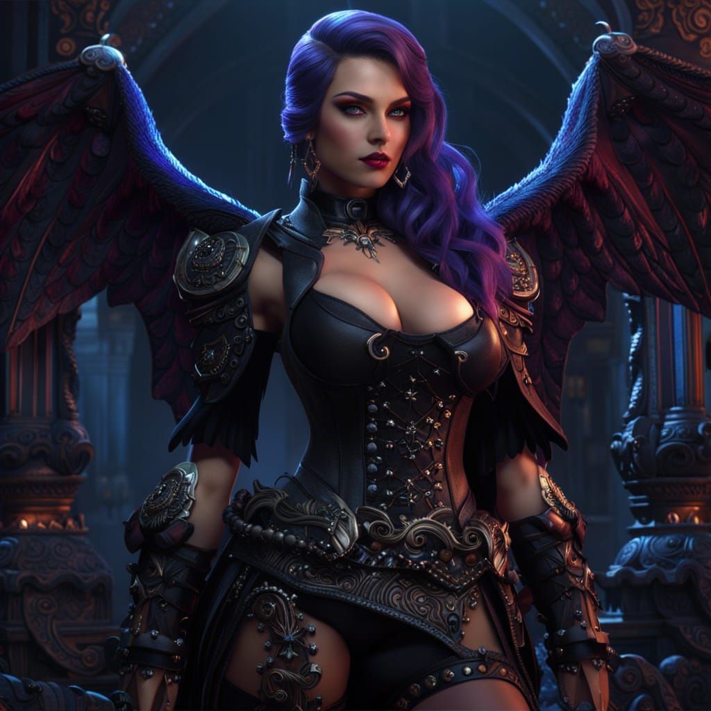 This image shows a striking portrait of a goth girl. She is wearing boots. The artwork is a detailed matte painting with intricate details and complementary colors.